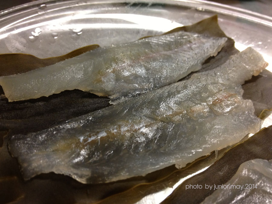 30cm近い数匹は三枚におろして酢でサッと拭いた昆布に挟むこと30分