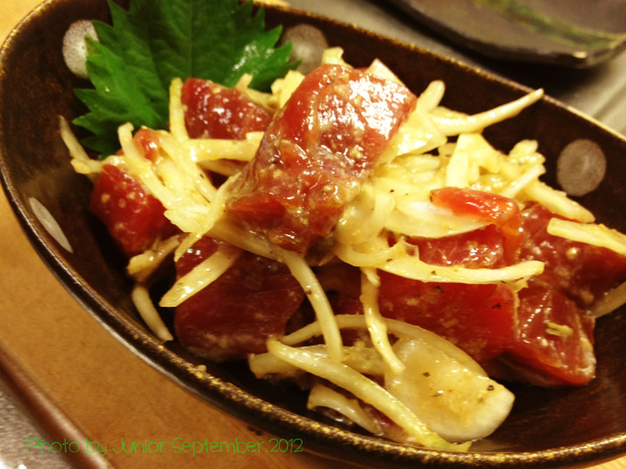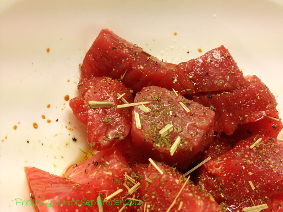 胡麻油/醤油/大蒜/岩塩/レモングラスそして大量の黒胡椒でマリネ