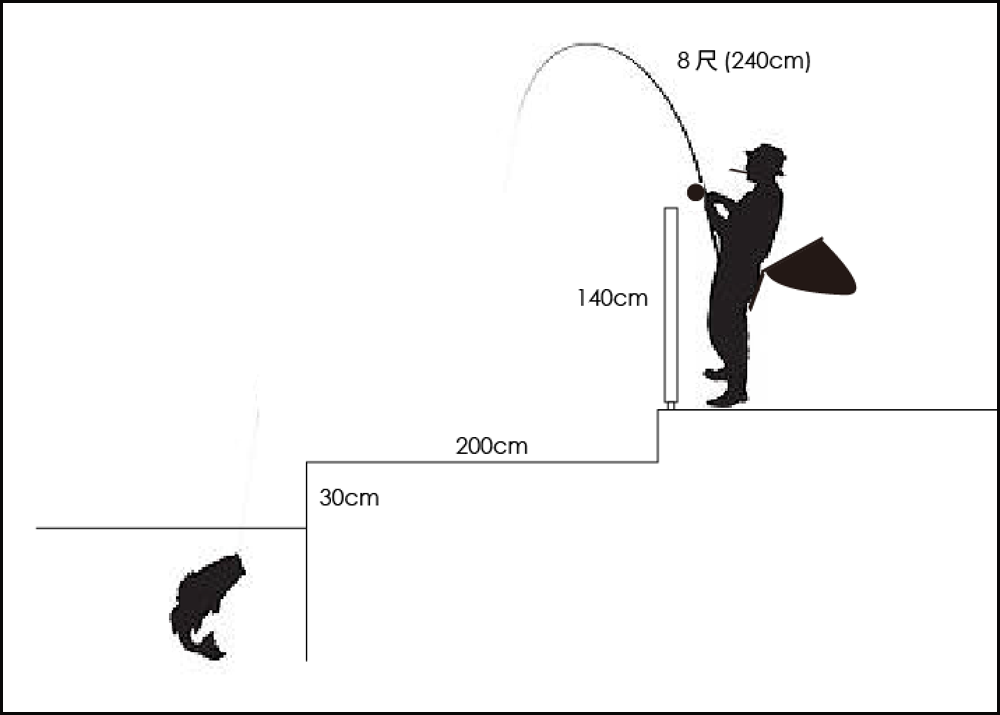 掛けてしまったら竿のしなりで岸壁までの距離が足りない