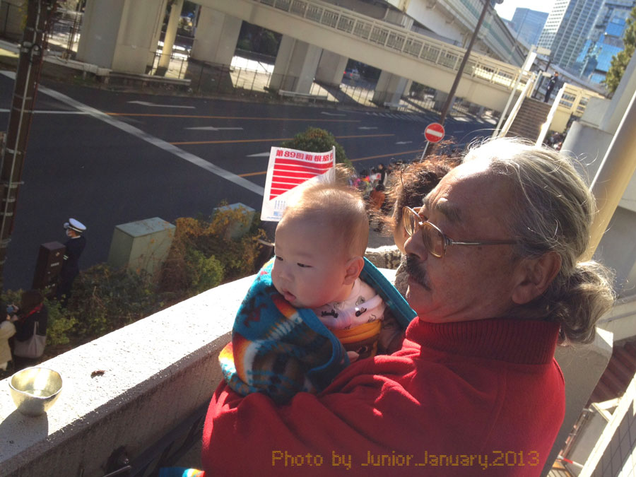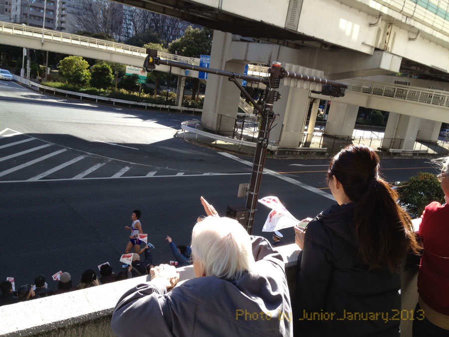ひい婆も大興奮で一位を爆走する日体大の選手に手を振り歓声を送る....