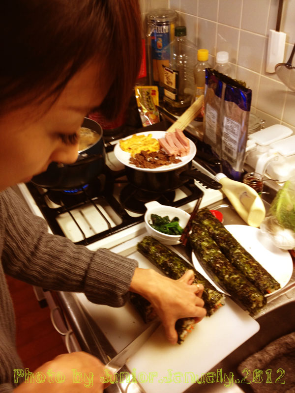 Aki'sキムパ(韓国風海苔巻き)作成中