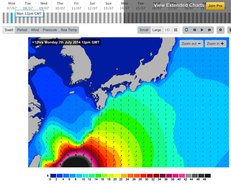 だがピーク時の勢力の際のうねりが 相模湾に1日半遅れて届く