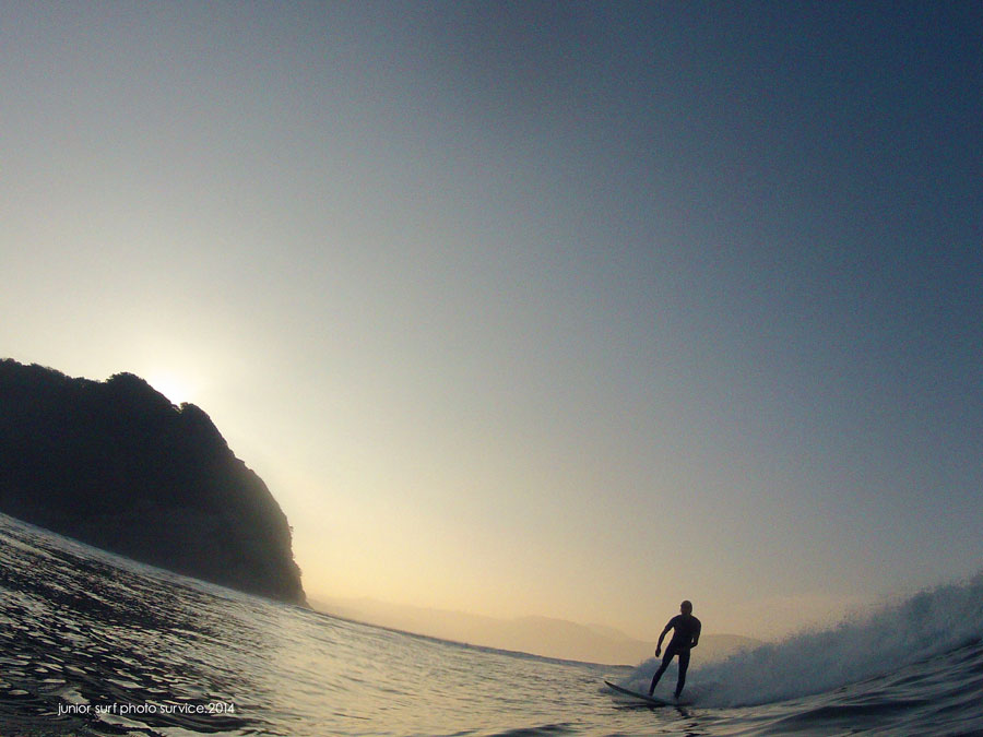8日の朝3:45am 真っ暗な中パドルアウト 沖に着き少し東の空が紅く染まる