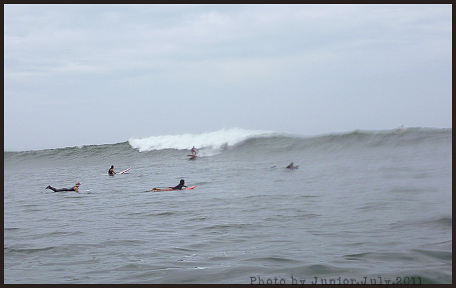 Yoskiと岩棚へとPaddled out
