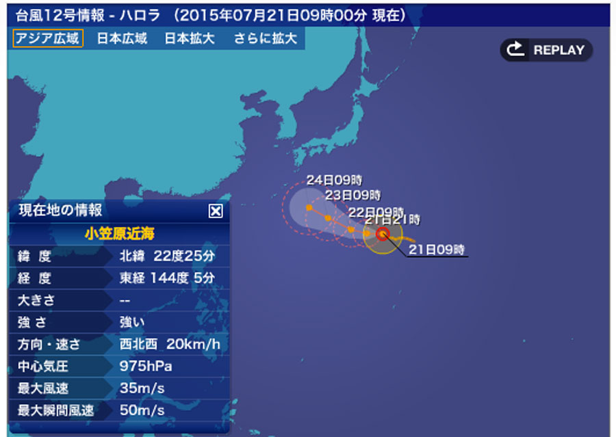 衰弱消滅していた12号がまた勢力を強め再度台風に発達